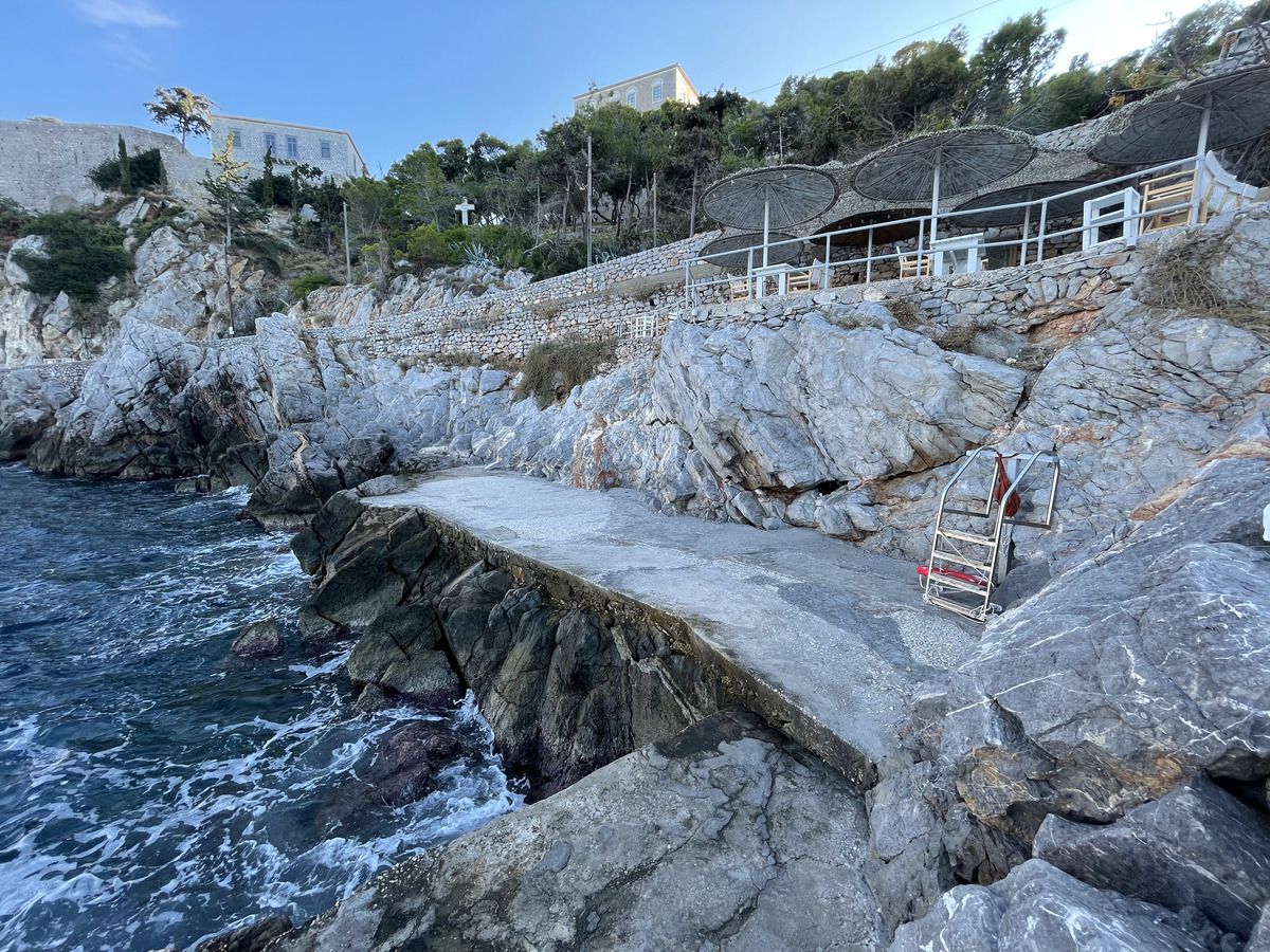 Mandraki is a 40-minute walk from Hydra to the east. But you could catch a boat taxi from Hydra port to get here if you don't want to walk. The cost is one way around 30€, though that may have been a high tourist price.