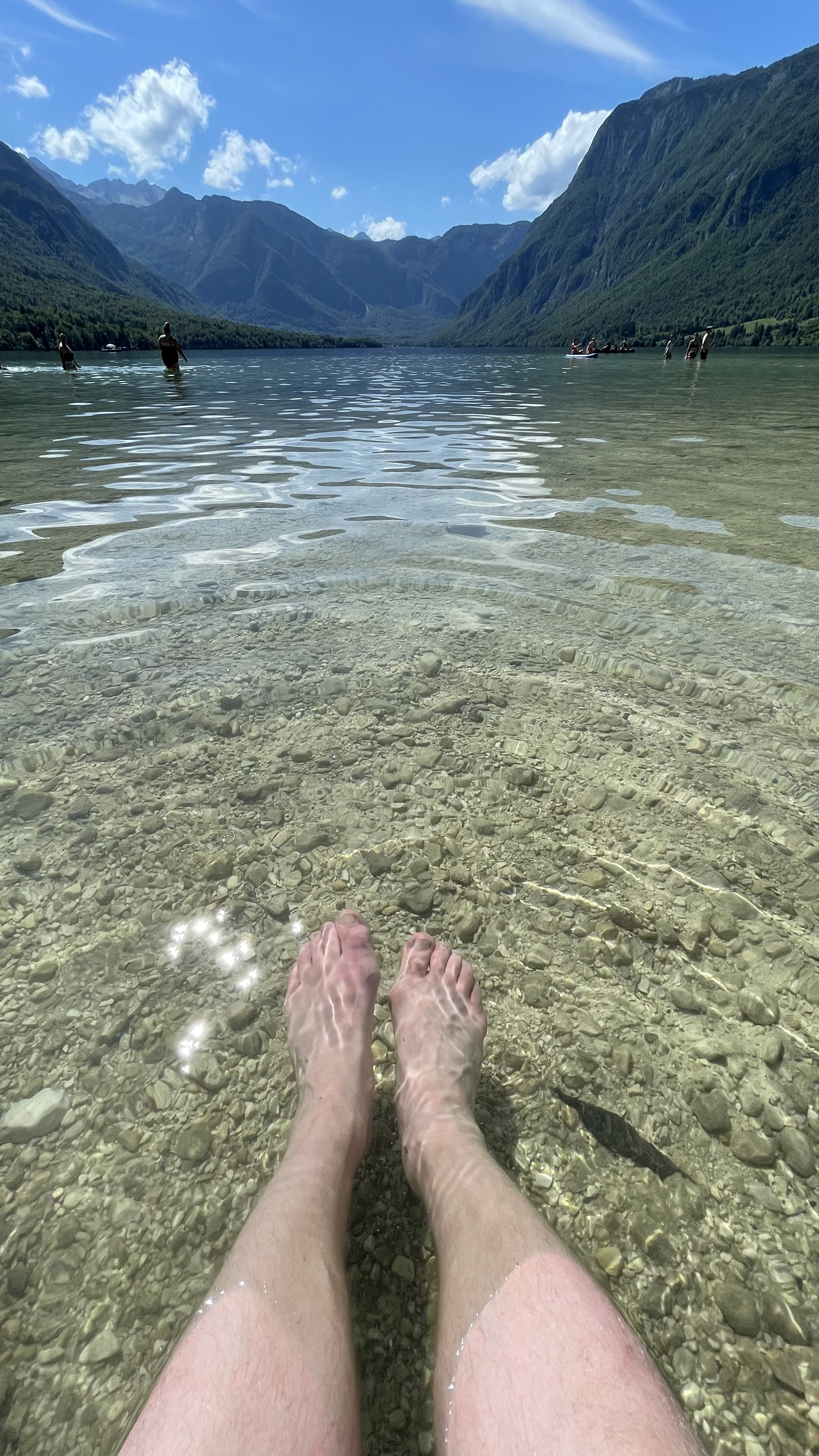Below are some pictures from Bled. First my tired feet getting a fresh bath: