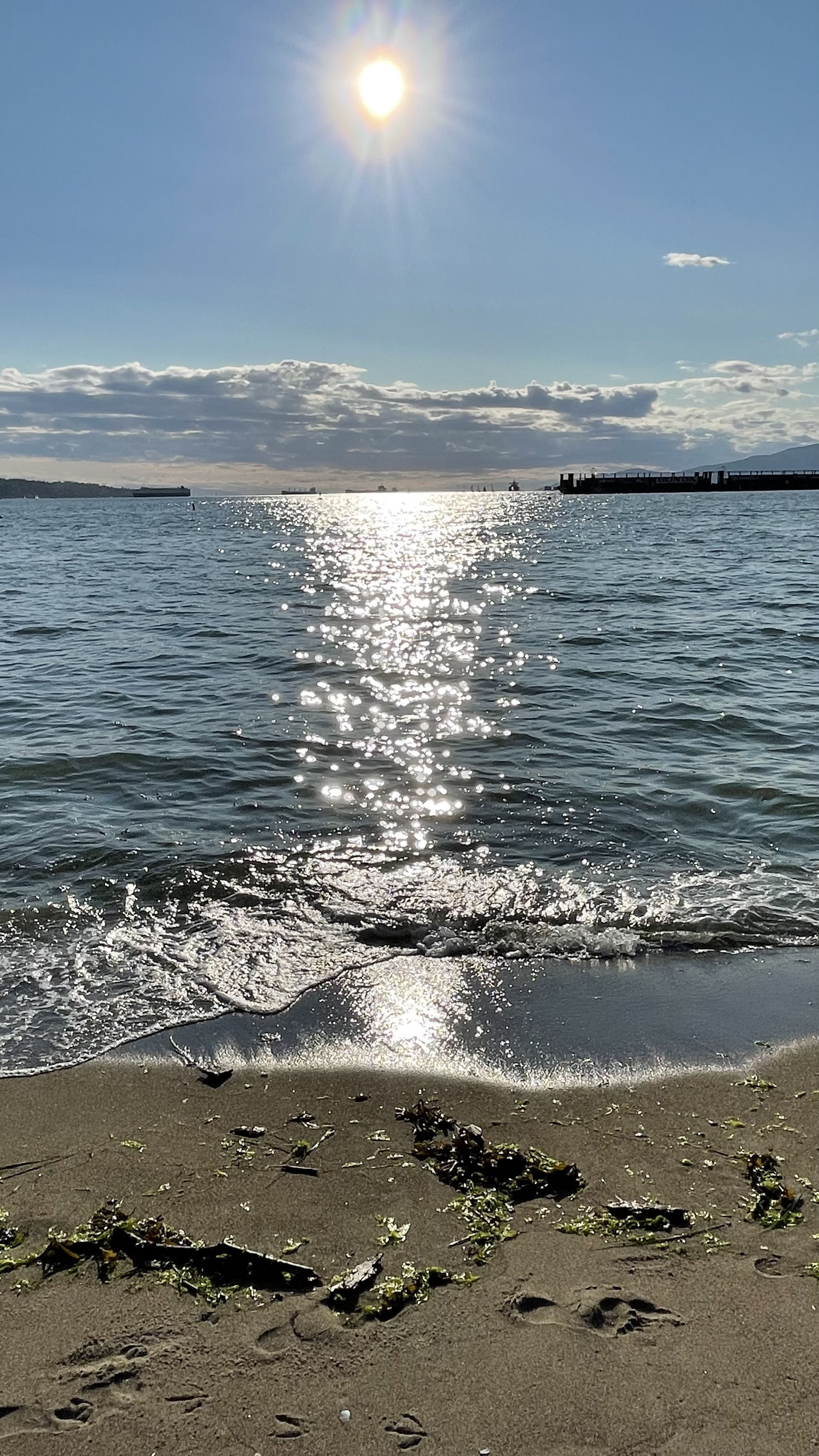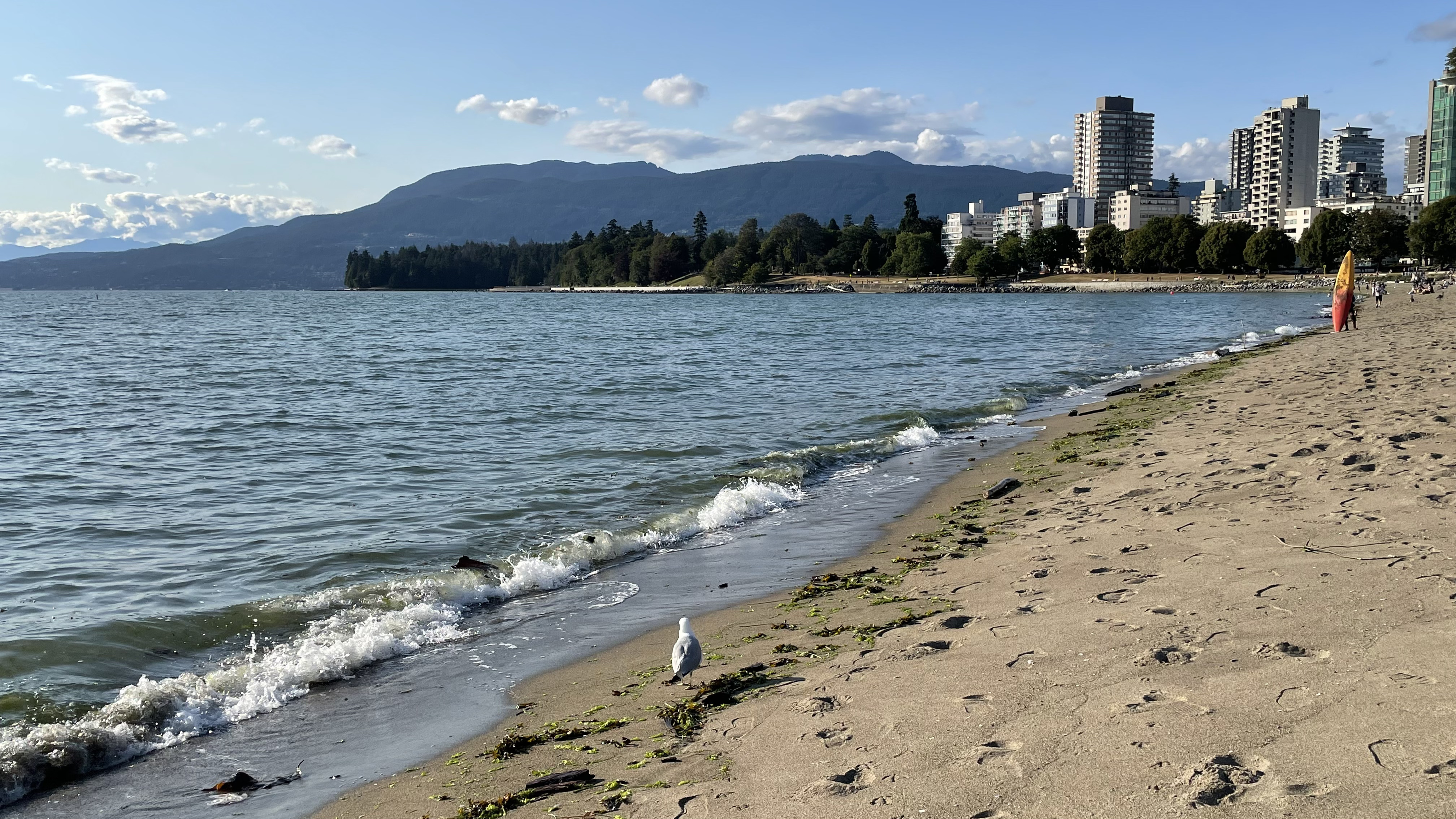 The beach at English Bay (link, coordinates N 49.285548 W 123.143912):